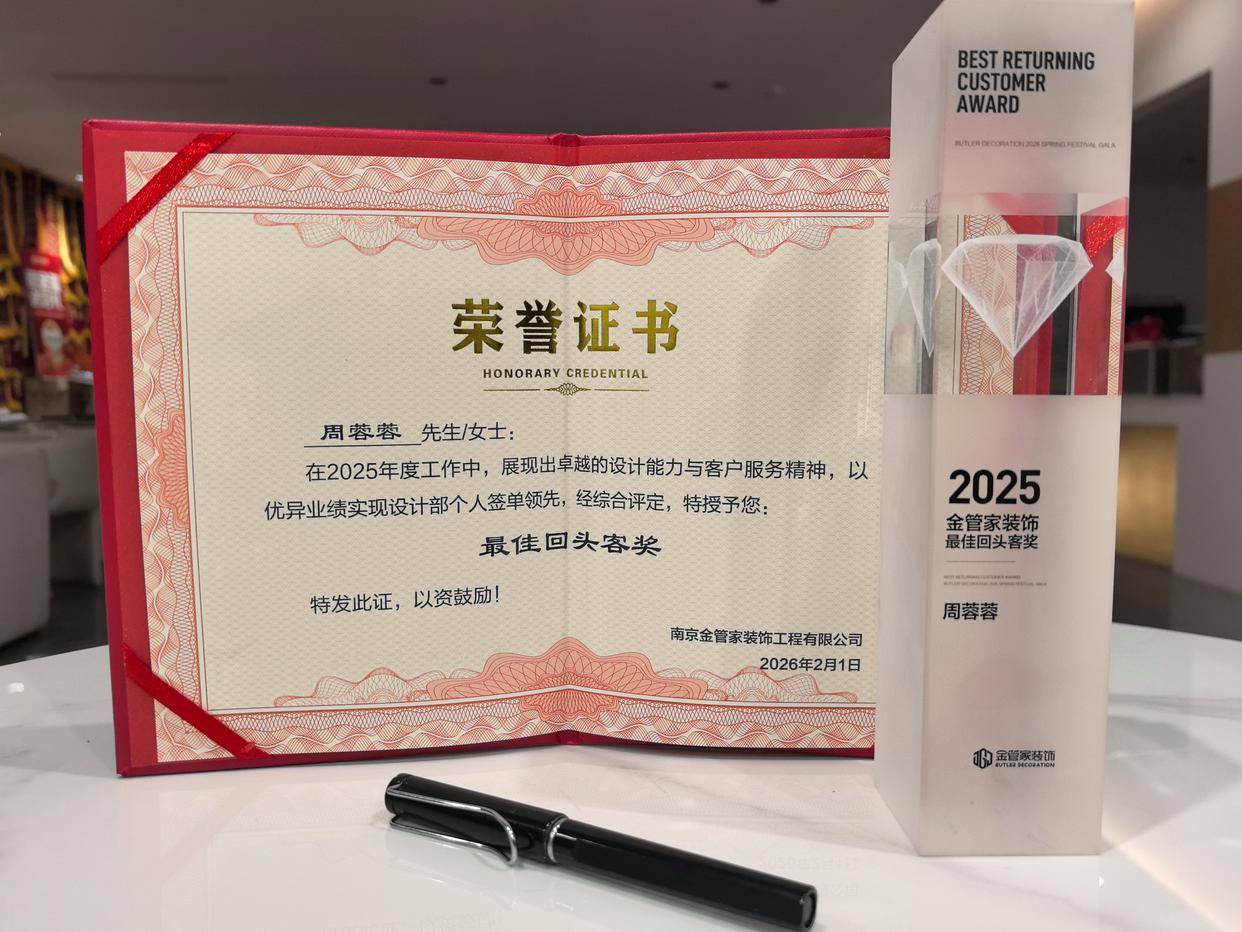 让空间既兼具美学质感,用专业取匠心,成功斩获2025年度“最佳回头客”,用更优良的设想、更贴心的办事,回馈每一位业从的相信,